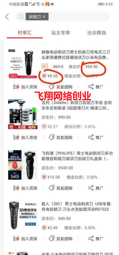 60元以内主推的是绞肉机和刮胡刀,佣金在10元左右一单。