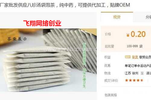 打开阿里巴巴,搜索八珍汤,找到对应的厂家。每袋仅仅0.2元,如果量够大,每袋仅需0.14元的成本。