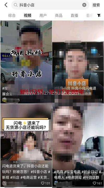 比如我们手上有套抖音小店运营的课程,现在想卖这个课程,我们可以打开抖音直接搜索关键词“抖音小店”,以发布时间进行排序,得到结果如下,在这里以时间排序是为了方便找到近期的目标客户。