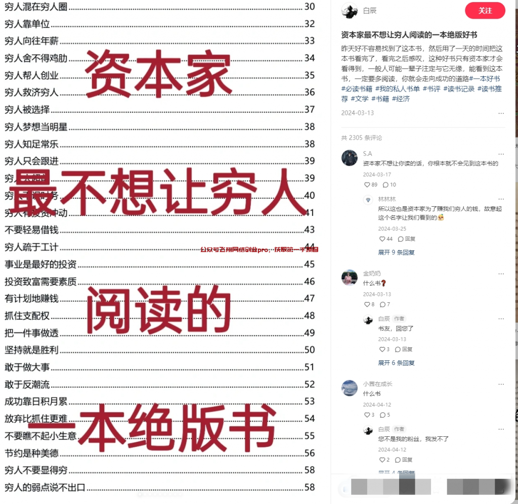 大家好,我是飞翔!今天给大家分享一个绝版书的项目,绝版书顾名思义就是一些市面上买不到的书,这类书往往需求量非常大,咱们要做的就是截图绝版书的部分内容发布到小红书进行售卖,由于是虚拟产品,所以属于一本万利