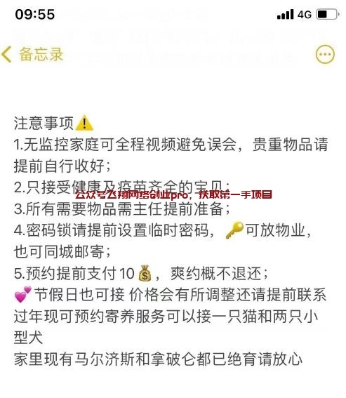 另外在接单后,务必要和顾客讲明一些注意事项,避免不必要的麻烦,把顾客加到你的微信上,做好私域也是有必要的,毕竟后期还可以通过售卖宠物食品,售卖宠物等其它方式获取额外收益
