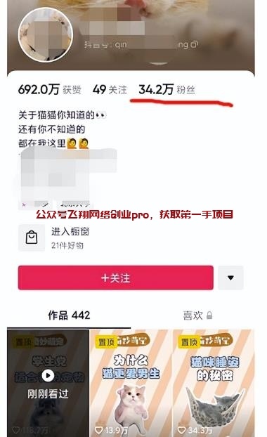 这种账号主要就是以分享宠物日常为主,简单易上手,如果你会些基本的剪辑,还可以做些混剪的视频,下面这些粉丝几十万的账号就是做宠物混剪的