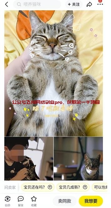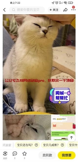 闲鱼店开好后,就是上商品了,新手如果不会也没事,直接参考同行的图片和文案,多找些同行的,把他们的图片和文案搬运到自己店上稍作修改就可以了,或者去网上搜索猫咪狗狗的图片截图使用也是可以的