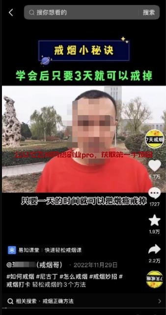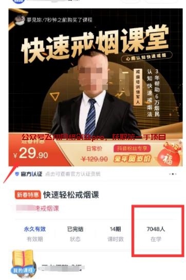 我们可以先去淘宝或者拼多多买套戒烟的课程,然后出镜去复述教程里的文案,就可以录制好一套属于你自己的课程了。去用心录制一套课程,高质量的课程可以无限售卖,边际成本无限低