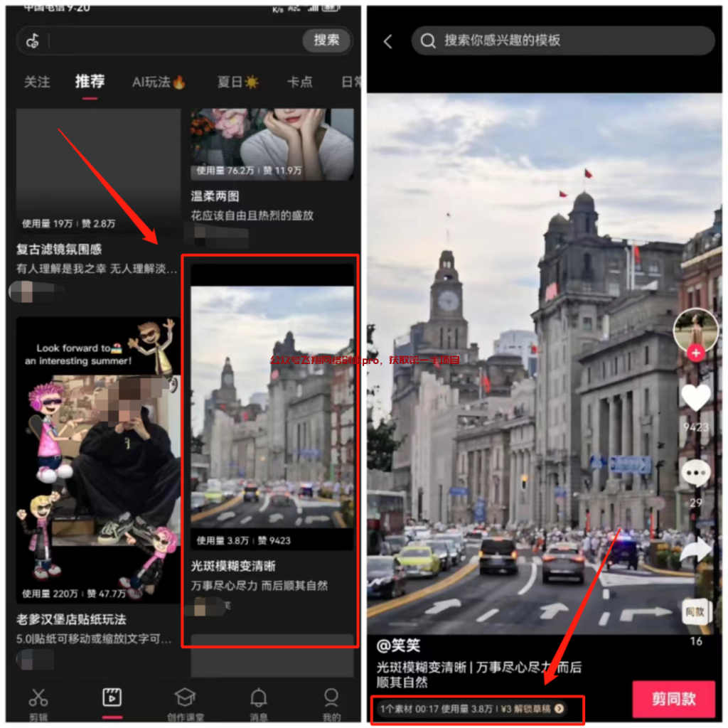 就比如这个剪映模版,解锁这个模版需要3元,这个模版使用量为3.8万人,当然,不是说所有人都解锁了,哪怕5%,那也是一千多人,就这么一个模版,收入几千,而且只要模版在,后续收入一直有的。