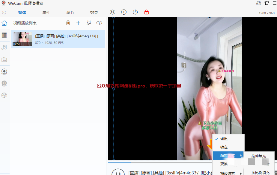 然后开启做任务的直播间,虚拟摄像头直播画面就出来了。(这里只是简单大体介绍,其他操作细节你们自己摸索吧。)