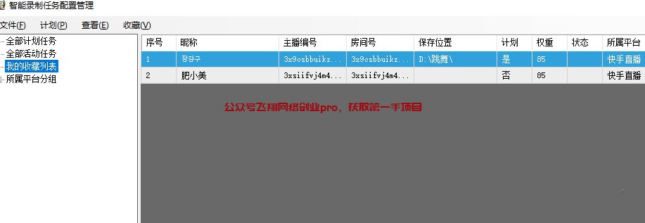 然后选定软件任务菜单,配置智能录制,选择我的收藏表,选中对标直播间