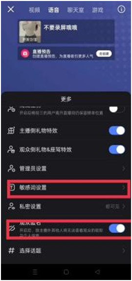 1.敏感词的设置(这个没开播过的要开播一次下播之后才能设置)