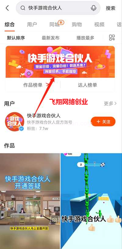 至于如何操作的话,我们只需要在快手搜索“快手游戏合伙人”就能够找到。