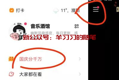 第一步:打开快手APP,点击左上角那三条杠,然后点击国庆分千万。