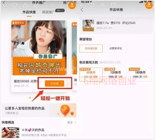 除了常规的作品推广功能,快手也在近期内测了“快推”,快推的推广流程更简便,同时有500次展示量的保底数据,运营者可以根据自己的需求灵活搭配选择。