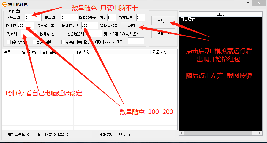 这是快手抢红包的脚本软件的截图,飞翔看了后台,感觉功能还挺齐全,就通过朋友渠道弄了一个授权码准备测试下,如果能用的话,就免费分享给大家!