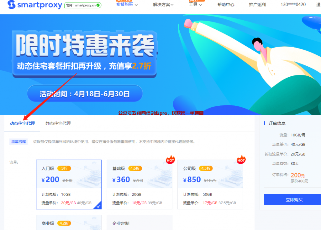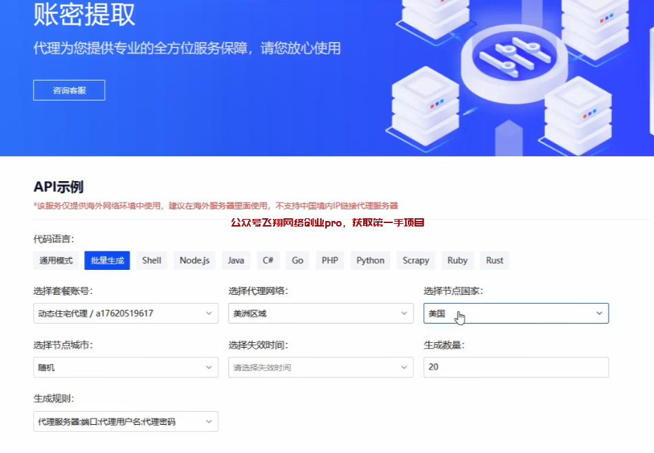 代理的话大家可以自行选择哦,现在这种国外的动态住宅代理的价格在200左右一个月,基本每个站点都有一定的试用,这里我不推荐任何站点,你们可以自己去找,基本每个站点都可以试用一定的代理条数,你们觉得OK后,再购买,千万不要一上来就花钱去买代理,毕竟调查这个项目是比较枯燥的,很多人都坚持不了的,所以不要乱花钱,一定要确定自己能够做,能持续干,再花