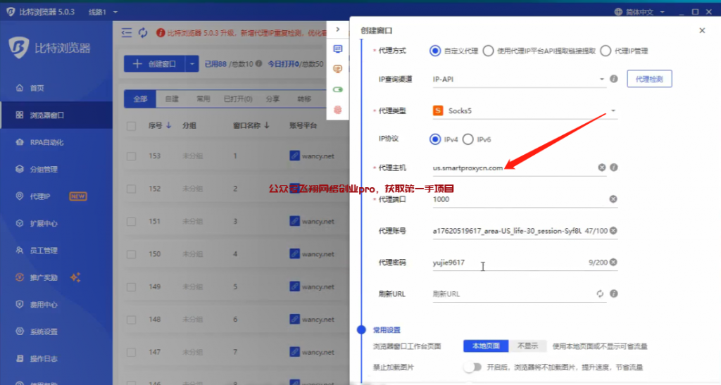 窗口名称什么随便填,然后一直往下拉,拉到填写代理那里