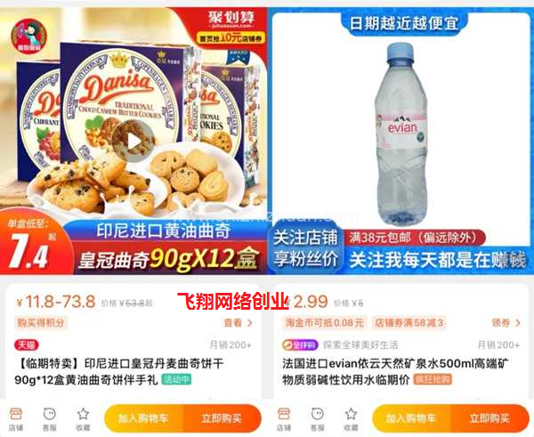 果然,万能的淘宝验证了所有可被商业化的野路子,这里的依云2.99元一瓶,这里的曲奇饼干7.4元一盒。我特意又去QQ群和豆瓣上面搜索了关键词,果然也找到了很多关于临期食品的交流群和讨论小组。