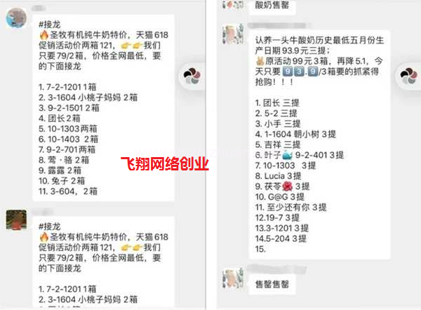 如果你主动地加入一些本地的商家群或者社区群,就会发现很多人都在卖这种临期的商品。一个微信群,一次团购接龙,流水就可能上万,如果你有10个、100个设置更多这样的微信群呢?