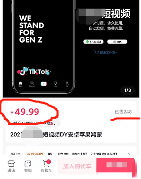 抖音上的这些账号变现也非常简单,就是直接发视频的时候挂商品,一单49块,卖了200-300份,就是一万多赚到了!对于我们网创行业的人来说,这个操作不是什么难事,但不懂操作的人依然有那么一大堆,毕竟这个操作就有门槛壁垒的