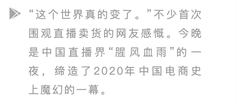 “这个世界真的变了。”不少首次围观直播卖货的网友感慨。昨晚是中国直播界“腥风血雨”的一夜,缔造了2020年中国电商史上魔幻的一幕。