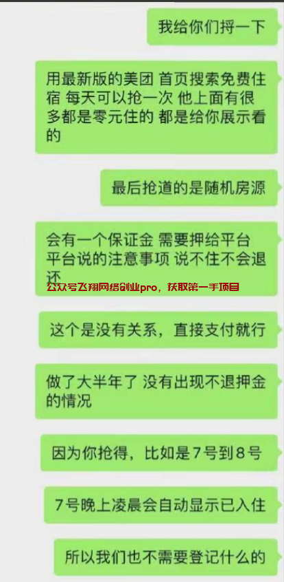 大家好,我是飞翔!今天给大家揭秘一个美团掘金的副业小项目,原理很简单,就是利用美团民宿里的免费入住功能,加到商家微信,之后微信里和商家谈折现