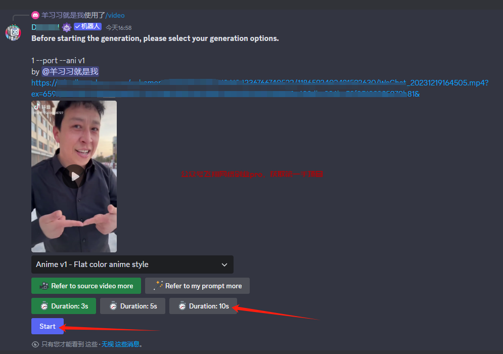 视频上传上去后,有几个时间选项,分别对应3S 5S 10S,我们选择10S,然后点start