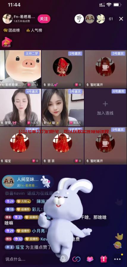 直播间有个连麦的功能,我们平日里用的比较多的都是1对1连麦,图片上是和8个人同时连麦,相当于有了8个“盲盒”,不过盲盒开出来是美女还是如花,就要看运气了