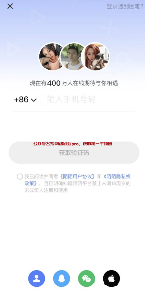 我们需要申请一个陌陌账号,具体过程这里就不细说了,毕竟我们今天是干货,这些基础工作如果你不会的话也不用想着网络上搞钱的事情了!