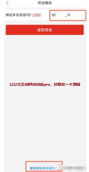 5.根据指引,登录之前注册的“多多进宝”账号,成功登录后会看到相应界面。如果想解除绑定,只需点击底部的蓝色链接即可