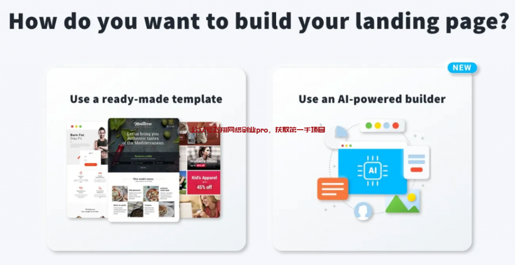 选左边用现成的销售页模板。 右边是新推出的 AI 模板生成,你也可以玩看看