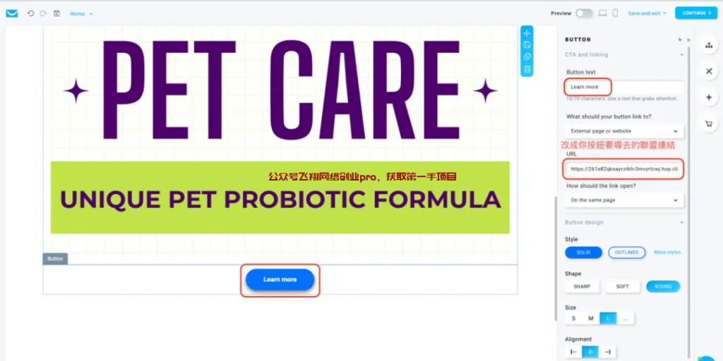 修改按钮文字,并将 URL 替换成你刚申请的联盟连结(很重要! 记得换!)