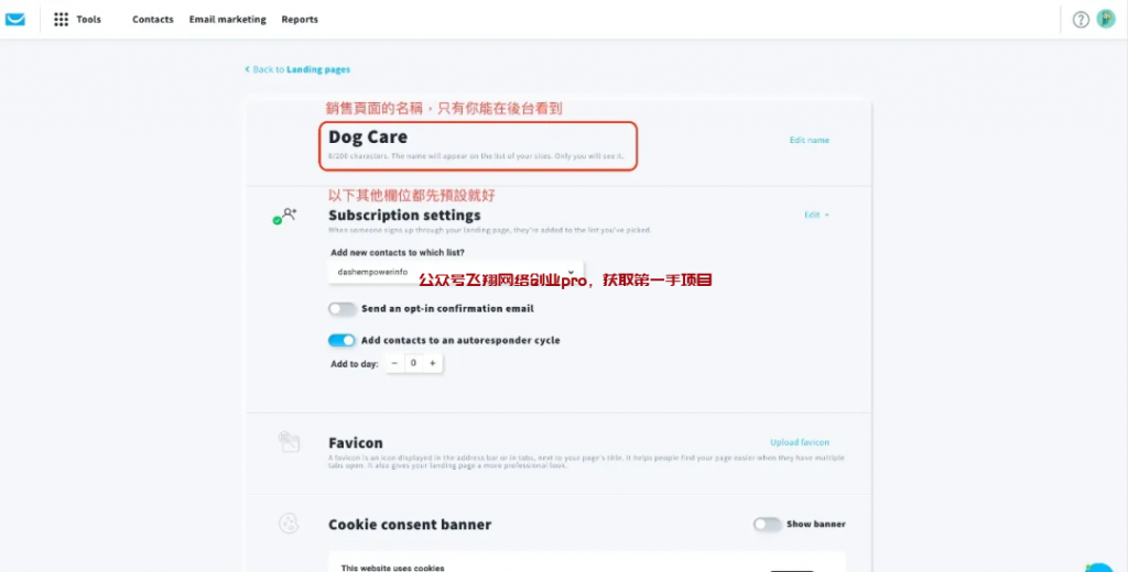 到下一页这边,只要修改销售页名称,剩下先用预设值即可