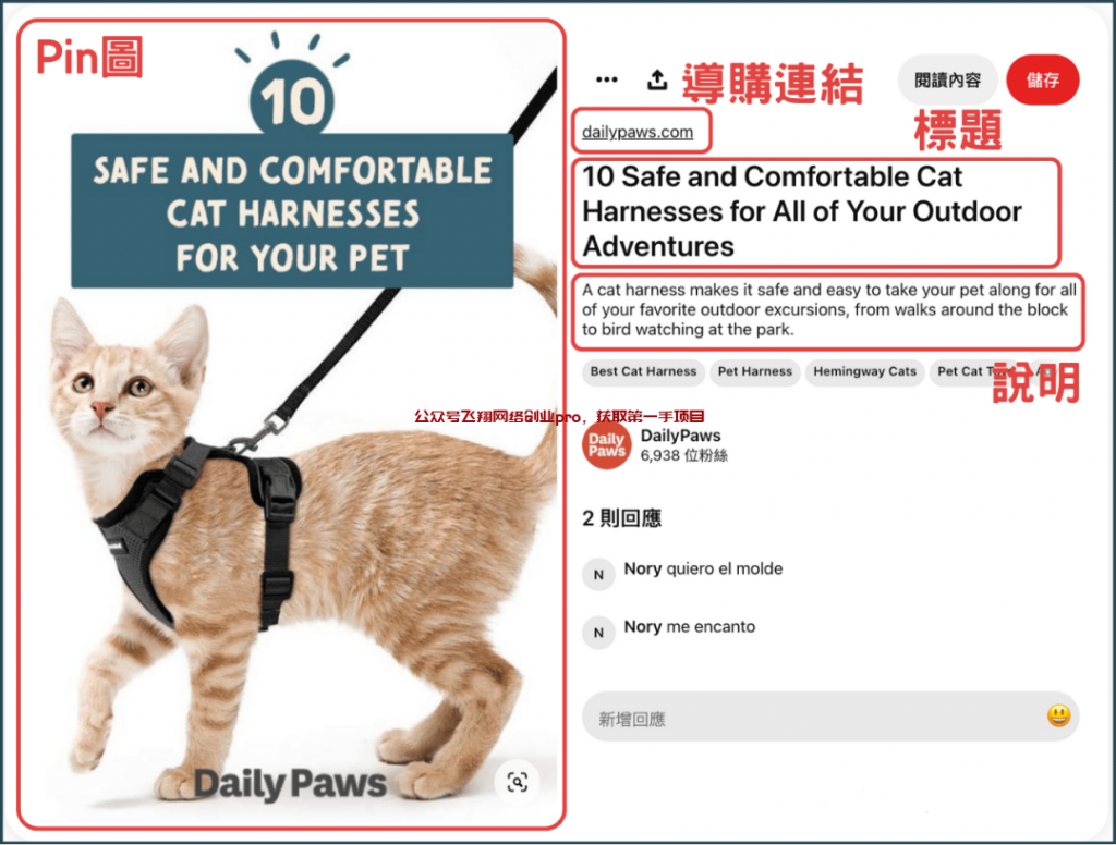 上传图片到 Pinterest ➞ 导流到博客 ➞ 用联盟链接导到购买页