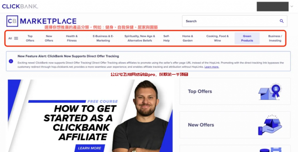 先选择一个你想推广的联盟营销平台,这里用 ClickBank为例