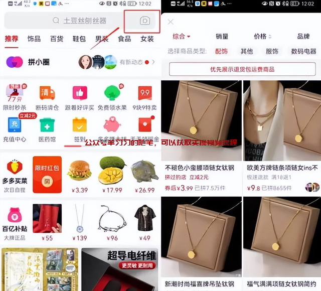 像上图闲鱼上的宝贝,直接在拼多多APP里用相机扫一下,就能搜索到非常多的同款
