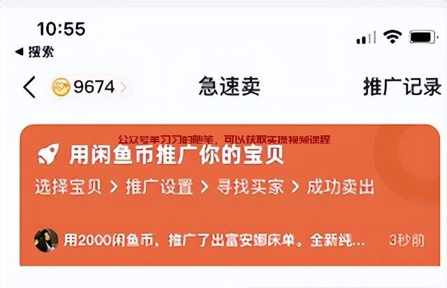 商品发布完毕后,卖家每天都会点击一键擦亮,擦亮时间一般固定在11点-13点,17点-20点。还有每天都会去点签到,不仅积累了账号权重,还攒了不少闲鱼币,这些闲鱼币可以用来做急速卖的推广,这个急速卖和淘宝的直通车功能一样,但是不烧钱,只烧闲鱼币