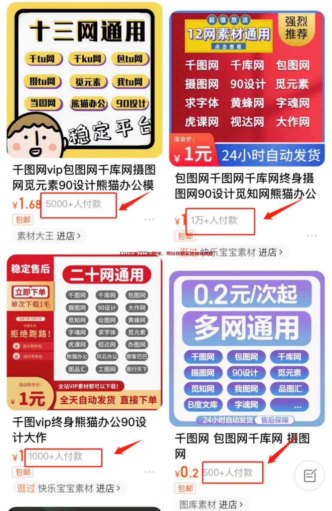 这些宝贝销量都比较高,一般下载一个素材收费1元