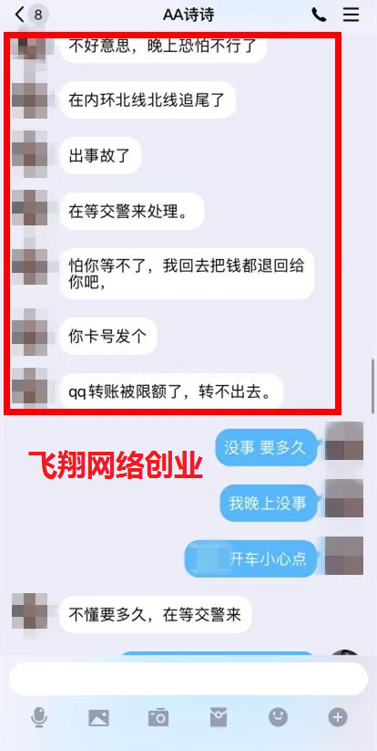 价格谈拢后,不法分子会要求受害人发送定位,因为其目标群体遍布全国,获得具体地址则可以进行接下来的杜撰,编造交通事故、车祸等理由取消赴约。