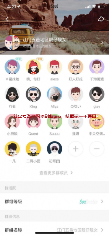 然后引流是直接把自己号的备注,修改为可以进微信群,因为基本上大多数人在soul上搜索进群,都是为了进微信群的,很多人一进群看到我们号的备注就会私信我们,想进微信群,群友私信进群我们回复也很敏感的,soul对敏感词管理还是很严的,直接留微信会被屏蔽,发多了几次会直接封号