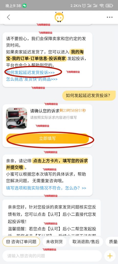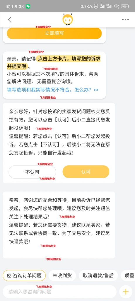 如果下单后,没有客户回复,并且等待了24小时,他们就会开始申请投诉。