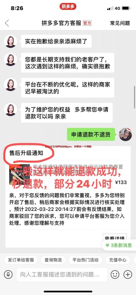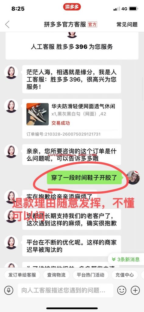 卖教程的人会让你就是找个你确认收货的商品,然后去找差评的图片,自己手上没有的就去搜同款,如果还没有,他们就会自己P图,弄个瑕疵出来,然后联系人工客服,说商品质量有问题