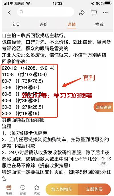这个很简单,就是购买省钱卡后,到这样的商家里购物(用红包抵扣),然后商家返还给你红包的一部分,比如你用了220-12元的红包,商家除了返还给你208元(你付的本金)+6元(红包套利),另外就是商家空手套取了6元的服务费。