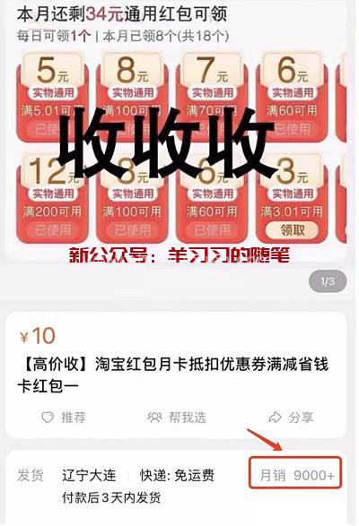 淘宝省钱卡完全对得起自用省钱这条,而要是掌握一定的骚操作的话,还能够妙用赚钱,如何赚钱?飞翔这里给大家提供三种变现方式: