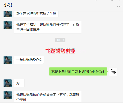 此项目中的另外一个和快递员谈分成的点,飞翔这里因为一些原因,不方便去测试,但是我个人认为,这可能是这个淘礼金项目唯一能真正变现获利的点,卖软件的卖家自己也开了一个驿站专门收学员的快递,一个快递反大家5毛