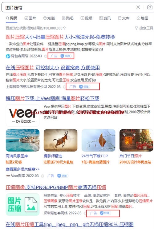 为了压缩图片,我在百度上搜索关键词图片压缩,发现好多人在投百度竞价广告,飞翔之前文章里就写过,凡是能在平台上持续投放广告的,一定是赚钱的