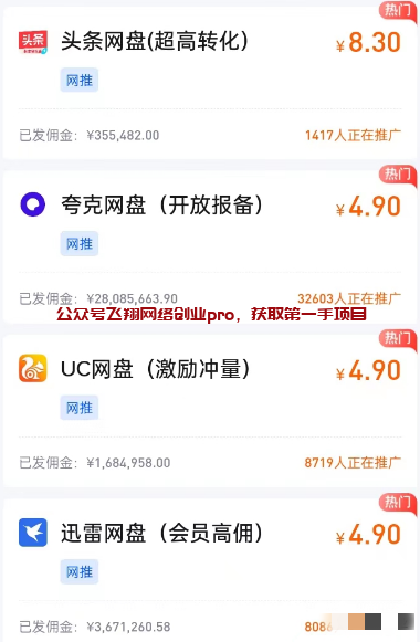 针对公域引流,目前出现了很多玩法,让人看的眼花缭乱。接下来,我给大家好好盘点一下目前几个比较典型的网盘拉新项目玩法