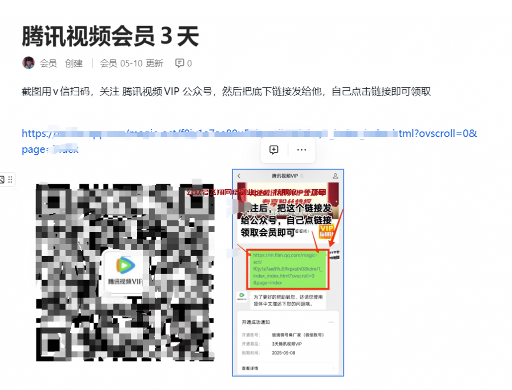 打开链接,是一个简单的领取教程,原理非常简单,就是关注一下腾讯视频的微信公众号,然后发送1个链接,就可以免费领取3天会员了,而且是100%成功的