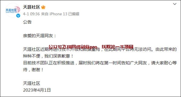 大家好,我是飞翔!今天咱们聊一聊天涯神贴合集的副业赚钱项目!天涯社区作为曾经国内最大的社交BBS论坛,今年4月份也论坛也暂时关闭了。