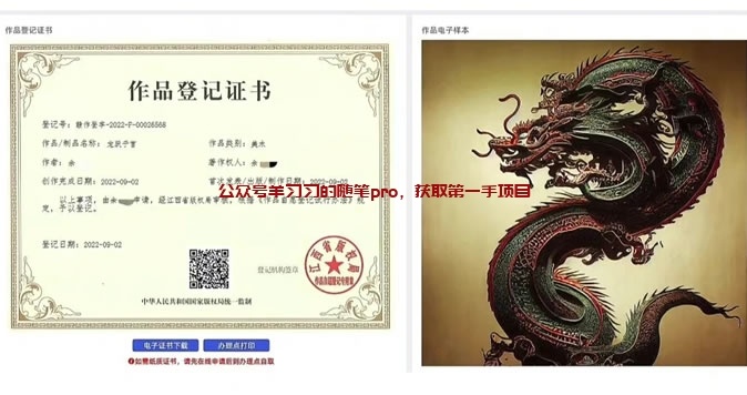 令人震惊的是这些使用AI作出的画,竟然还可以申请到版权,就在前段时间,小红书上还真有人去申请到了版权
