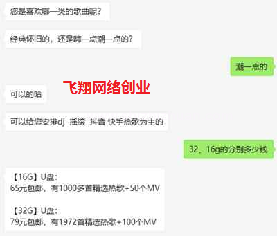 将网盘里的音乐发给客服,客服会将音乐内容批量传输到U盘中,成本约在15-30元,U盘的价钱可以根据歌曲的数量和内存大小来定,卖出去可以把售价翻倍。