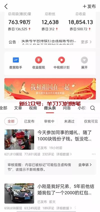 大家好,我是飞翔!最近我的博客后台有将近200人通过搜索微头条收益进的我的博客文章,看来有不少朋友都对微头条赚钱项目感兴趣,今天再和大家聊聊微头条搬运赚钱的一些情况