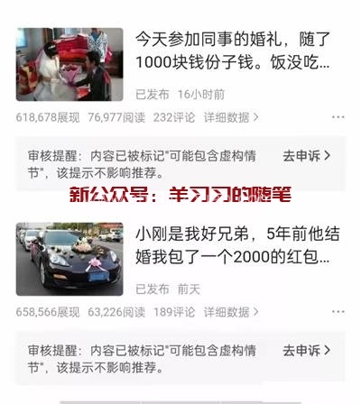 像一些结婚闹剧,给红包呀,给彩礼呀,结婚啊,一些邻里婆媳之间的矛盾,点击率都是非常可观的。